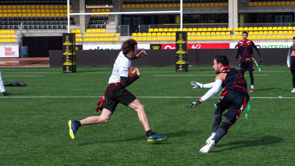 Accessible aux débutants comme aux joueurs confirmés, la section adulte permet de pratiquer un sport collectif intense et stratégique. Grâce à l’absence de contacts (pas de plaquages), c’est une excellente option pour une reprise sportive stimulante. En savoir plus sur l’équipe adulte