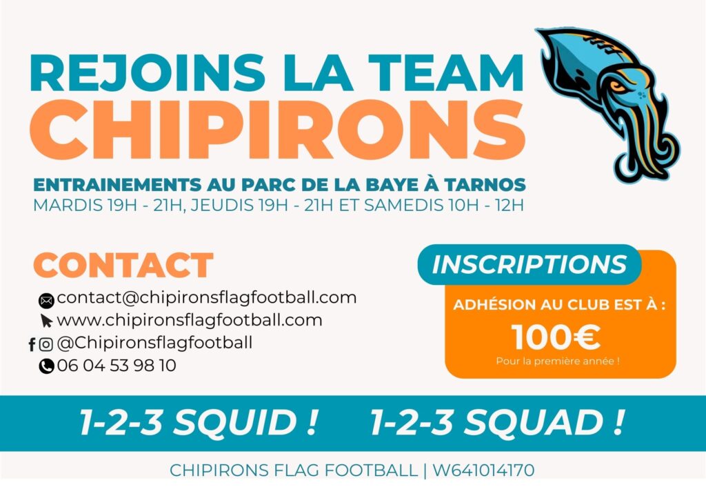 Que vous veniez de Tarnos, Bayonne, Boucau, Ondres ou des environs, venez rencontrer l’équipe, tester vos réflexes sur le terrain et découvrir l’ambiance des Chipirons sans aucun engagement immédiat. Munissez-vous simplement d’une tenue de sport et de chaussures à crampons (si possible). Voir où et quand venir nous rencontrer